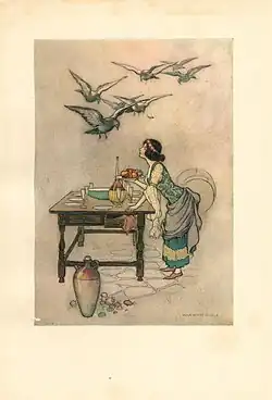 - Staatliche Kunstsammlungen Dresden: Bilder von Josef Hegenbarth zu Die sieben Tauben: [1], [2]