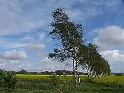 Im Westen des Ortes wurden zum Schutz der Obstplantagen landschaftsprägende Birken- und Pappelreihen angepflanzt.