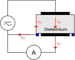 Für beide Methoden wird derselbe prinzipielle Messaufbau verwendet. Hierbei wird in einem Dielektrikum durch eine Spannungsquelle ein Feld erzeugt. Mit einem Amperemeter wird der durch dieses Medium fließende Strom gemessen. Eine Guard-Elektrode dient dazu, Oberflächenströme an der Messung vorbeizuleiten, so dass nur der Volumenstrom gemessen wird. Diese Anordnung ist in nebenstehender Abbildung dargestellt. Das Untersuchungsobjekt (Dielektrikum) ist anwendungsabhängig.