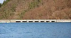 Zum Kriegsende kam es nicht zur von der Waffen-SS geplanten Sprengung der Mauer, da US-Truppen Ende März bzw. Anfang April die Stauseeumgebung schon besetzt hatten und daher die deutschen Soldaten bereits abrücken mussten. Noch im April wurden die US-Soldaten durch belgische abgelöst und diese wiederum im Juni durch britische.[22]