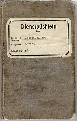 - Seiten 0 und 1 für das Einkleben von Mobilmachungszettel, Spezialaufgebotszettel oder Dispensationsbefehl sowie den Vorschriften für die Verpflegung und Ausrüstung bei Kriegsmobilmachung.