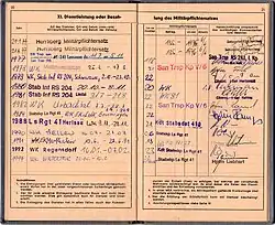 - blaue Seiten mit ärztlichen Daten, Impfungseintragungen und sportliche Leistungen bei der Rekrutierung;