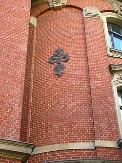 Die Fassaden des Dienstgebäudes der Eisenbahndirektion nehmen mit ihren Volutengiebeln, Türmen und schmiedeeisernen Mauerankern Formen der deutschen Renaissance auf. Die Flächen aus rötlichen, weiß verfugten Klinkern bestimmen im Wesentlichen Bild und Farbe des Baus, da Wegner nur die Gliederungen wie Fensterrahmungen, Gesimse und einzelne Ornamente in Sandstein ausführen lassen durfte. Selbst dort musste er aber noch streng auf die Kosten achten, sodass nur für die Sandsteinarbeiten an den bevorzugteren Gebäudeteilen wie dem Mittelrisalit Heuscheuer Sandstein aus Schlesien zum Einsatz kam. Die übrigen Sandsteinteile waren aus kostengünstigerem Warthauer Sandstein aus Schlesien und an der Rückseite ist die Verwendung von Haustein auf das nothwendigste beschränkt.[4] Wohl leicht resigniert schrieb Wegner 1896 deshalb im Centralblatt der Bauverwaltung zur baulichen Ausstattung des Gebäudes, dass es alle an ein Gebäude dieser Bedeutung zu stellenden Anforderungen an Dauerhaftigkeit erfülle und innerhalb der für Staatsbauten aus Kostenrücksichten gebotenen Grenzen monumentales Gepräge erreiche.[4]