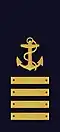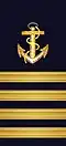 | Deutsches Pendant | Admiral | Vizeadmiral | Konteradmiral | Flottillenadmiral | Kapitän zur See | Fregattenkapitän | Korvettenkapitän | Kapitänleutnant | Oberleutnant | Leutnant | Offiziersanwärter |