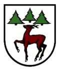 Blasonierung: „In Silber ein nach rechts schreitender roter Rehbock, darüber drei nebeneinander stehende grüne Tannen.“