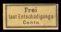 Ab dem 1. Juli 1874 gab es Gebührenzettel für Dienstbriefe der Eisenbahn, welche im Buchdruckverfahren auf gelbem Papier hergestellt wurden. Auf den Zetteln stand: Frei laut Entschädigungs-Conto. Hierbei ist zu unterscheiden zwischen den Ausgaben allgemeiner Art (doppellinige Einfassung) und der sogenannten OPD-Ausgabe mit einfacher Einfassung (ohne Hilfslinie). Die Gebührenzettel wurden vom Generalpostamt an die einzelnen Oberpostdirektionen ausgeliefert und von diesen an die einzelnen Postämter verteilt. Es bestand Verwendungsverpflichtung für jede Dienstsendung der Eisenbahnen. Die einzelnen Portobeträge wurden kontiert (daher „Entschädigungsconto“) und monatlich der Eisenbahnverwaltung in Rechnung gestellt. Eine separate Abstempelung der Marke war nicht vorgesehen, daher sind echt gestempelte Stücke äußerst selten.[1]