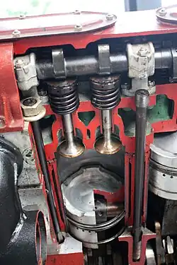 Details Zylinder und Brennraum, Blick auf die beiden Auslassventile