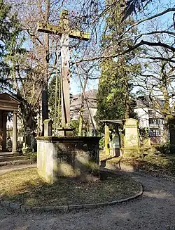 Auf dem 1369 erwähnten Land „am Tyeten Kirchhove up dem Crüytzvelde“ soll möglicherweise ein erster der zwei Friedhöfe des Konventes angelegt worden sein. Es war eingeteiltes Areal, wobei eine Hälfte für die letzte Ruhe der Konventualinnen bestimmt war – Äbtissin Ponzetta wurde in der Barbarakapelle der Münsterkirche beigesetzt – und der weitere Teil war die Begräbnisstätte der Pfarrangehörigen.[36]