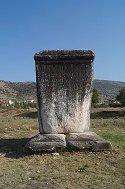 Der Hügel wurde nach einem 4 m hohen römischen Steinsockel benannt, der etwa 200 m nordöstlich von Dikili Tash im 1. Jahrhundert n. Chr. zu Ehren des römischen Offiziers Gaius Vibius Quartus errichtet wurde. Damals verlief die Via Egnatia direkt südlich des Steinsockels. Der Marmorsockel ist auf zwei Seiten, der westlichen und südlichen, beschriftet. Die Inschrift wurde von den Dorfbewohnern in der Vergangenheit im unteren Teil zerstört. Man glaubte, der Sockel sei die Krippe des Bukephalos, des Lieblingspferdes von Alexander dem Großen, und die stillenden Frauen rieben deshalb Marmor vom Sockel ab und mischten ihn unter ihre Milch in der Hoffnung, ihre Söhne könnten so ähnliche Stärke wie Alexander erlangen.[2]