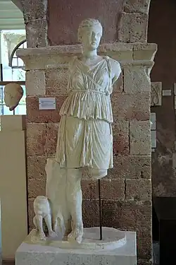 Ikonographisch wird sie mit Artemis gleichgesetzt.