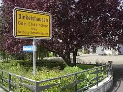 Dinkelshausen ist Gemeindeteil der vier Kilometer entfernten Gemeinde Ehekirchen im oberbayerischen Landkreis Neuburg-Schrobenhausen.