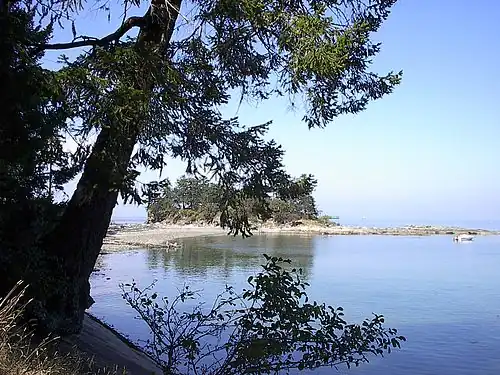 Der Tidenhub der Strait of Georgia ist auch hier deutlich spür- und sichtbar; er beträgt im Regelfall etwa 2 bis 3 Meter.[5] Die umgebenden Gewässer und die Gezeitenzone sind ebenfalls reich an maritimem Leben. Jäger wie Stellerscher Seelöwe, Kalifornischer Seelöwe und Schwertwal kommen ebenso vor wie verschiedene Oncorhynchus-Arten, Lengdorsch, Heilbutt oder verschiedene Lachs-Arten.
