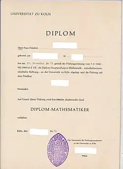 - ↑ Pressestelle: Mehr Mathe dank Diplom. Abgerufen am 19. Juni 2021.