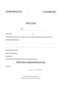 Diplom-Kriminologe (Abk. Dipl.-Krim.) ist ein akademischer Grad, der in Deutschland an Hochschulabsolventen des an der Universität Hamburg von 1984 bis 2005 angebotenen Studiengangs Aufbaustudium Kriminologie verliehen wurde.