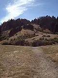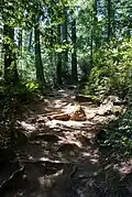 | Halfway Rock | Nach 3,19 Meilen wird der „Halfway Rock“, ein markanter Stein (Bild) im Mount Tamalpais State Park erreicht. Nach der heutigen Streckenführung sind an dieser Stelle allerdings erst 43 % der Gesamtstrecke überwunden. | 3,19 |