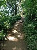 | Rainforest | Nach 3,65 Meilen verlassen die Läufer den Mount Tamalpais State Park und betreten erneut das Muir Woods National Monument. Der nun folgende Streckenabschnitt wird wegen seines dichten Baumbewuchses als „The Rainforest“ bezeichnet (Bild). In Jahren mit besonders hohen Niederschlagsmengen sind die Pfade in diesem Abschnitt mit Schlamm bedeckt. | 3,65 |