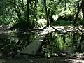 | Steg über den Redwood Creek | Nur wenige Schritte hinter dem Muir Woods Parkplatz überqueren die Läufer den Redwood Creek über einen Holzsteg (Bild). In den 1970er Jahren war der Holzsteg mit einem Schild „No Running on Bridge“ versehen, das von vielen Läufern ignoriert und später abgebaut wurde. In besonders regenreichen Wintern wird der Steg entfernt. | 2,17 |