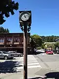 | Mill Valley, Miller und Throckmorton | Das Dipsea Race startet traditionell im Herzen Mill Valleys, in der Nähe des Mill Valley Eisenbahndepots. Zunächst geht es auf der Throckmorton Avenue (im Bild rechts) nach Westen zum Old Mill Park. In den frühen Jahren des Dipsea Race wurde das Rennen direkt an der „Historic Clock“ (Bildmitte) gestartet. | 0 |