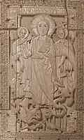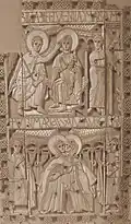 - ↑ Hermann Schnitzler: Die Elfenbeinwerke der Hofschule, in: Karl der Große, Katalog zur Ausstellung Aachen 1965, S. 309–347, hier S. 320.