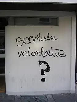 Vermutlich während seiner Studienzeit verfasste La Boétie, sichtlich unter dem Eindruck der genannten Revolten und der Diskussionen im Umfeld Du Bourgs, seinen flammenden Discours de la servitude volontaire (= Abhandlung über die freiwillige Knechtschaft), worin er die These vertritt, dass die Unterdrückung vieler Menschen durch einen einzigen nur solange möglich sei, wie die vielen sich unterwerfen, statt sich kollektiv zu widersetzen.