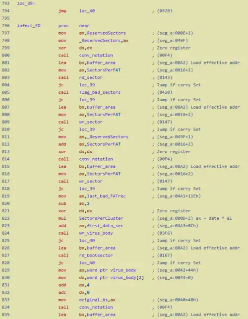 - Neben der Umleitung auf den Viruscode wird der Bootsektor oder MBR auch mit einer Routine ausgestattet, die acht Kilobyte Systemspeicher für die Ausführung reserviert.