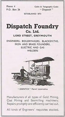 - ↑ John Garner: New Zealand Geared Locomotives: Dispatch Foundry, Greymouth, Geared Steam Locomotives.
