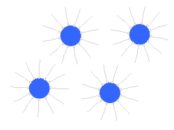 Die Stabilisierung kann dabei elektrostatisch, sterisch oder elektrosterisch erfolgen. Bei der elektrostatischen Stabilisierung wird die Oberfläche der zu stabilisierenden Partikel so belegt, dass alle Partikel gleichnamige Ladungen aufweisen und sich somit abstoßen. Bei der sterischen oder entropischen Stabilisierung wird die Partikeloberfläche mit langkettigen Molekülen belegt. Bei Verringerung des Partikelabstands würde sich die Entropie des Systems verringern, was der Flokkulation entgegenwirkt. Bei der elektrosterischen Stabilisierung sind die langkettigen Moleküle zusätzlich geladen, so dass beide Effekte genutzt werden können.[3]