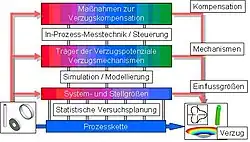 Diese Vorgehensweise unterstützt einerseits eine verzugsgerechte Konstruktion und Fertigung von Bauteilen und andererseits eine Kompensation der Bauteilverzüge durch die gezielte Nutzung von vorhandenen Verzugspotenzialträgern (VP-Träger) in der Prozesskette. Wesentliches Merkmal des Distortion Engineering ist die Systembetrachtung und die Erkenntnis, dass nur die Betrachtung des Verzugs als eine Eigenschaft in der gesamten Fertigungskette erfolgreich sein kann. Dafür müssen auch die Wechselwirkungen der Einflussfaktoren aus den einzelnen Fertigungsschritten auf den Verzug identifiziert, hinsichtlich ihrer Wirkung verstanden und durch Zusammenarbeit der relevanten Fachdisziplinen in einen systemübergreifenden Lösungsansatz einbezogen werden.
