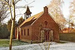 - Die jetzige Kapelle auf dem Friedhof wurde Ende der 1940er Jahre von der Gemeinde Ditterke errichtet und der Kapellen-Gemeinde übergeben.[7] Ihre ursprüngliche Vorgängerin war schon im 17. Jahrhundert zerstört.[4] Über diese Vorgängerkapelle gibt es keine urkundlichen Nachweise.[7] Die im Dachreiter der Kapelle hängende Glocke hatte früher ihren Platz im Dachreiter der ehemaligen Schule und datiert ausweislich der Inschrift aus dem Jahr 1662.[7] Als Mahnmal für die Opfer der beiden Weltkriege des 20. Jahrhunderts wurde auf dem Friedhof ein großes von zwei Steinsäulen flankiertes Steinkreuz „aus Thüster Serpelkalkstein des Oberen Jura“ errichtet.[24]