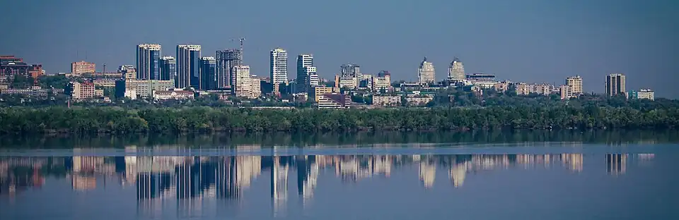Dnipro (ukrainisch Дніпро,[2] russisch Днепр Dnepr; Name bis 1926 meist Jekaterinoslaw, dann bis 2016 ukrainisch Дніпропетровськ Dnipropetrowsk, russisch Днепропетровск Dnepropetrowsk oder Dnjepropetrowsk) ist mit etwa einer Million Einwohnern[3] nach Kiew, Charkiw und Odessa die viertgrößte Stadt der Ukraine und das administrative Zentrum der Oblast Dnipropetrowsk und des Rajon Dnipro.[4] Sie liegt an drei Seiten der Mündung der Samara in den hier aufgestauten Dnepr und rund 400 km südöstlich der Hauptstadt Kiew in der zentralöstlichen Ukraine.