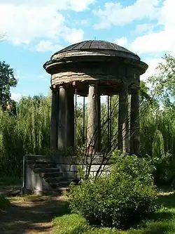 Noch sehenswerter als das Schloss ist der Landschaftspark, der ebenfalls um die Wende vom 18. zum 19. Jahrhundert angelegt wurde und im englischen Stil gehalten ist. Er umfasst zwei Flussläufe sowie mehrere Teiche und Kanäle. Der Pantheon genannte Rundpavillon (dessen architektonisches Vorbild der römische Pantheon darstellt) war im 19. Jahrhundert Versammlungsort einer Loge der Freimaurer. Auf einer künstlichen Insel erhebt sich in einem der Teiche ein Monopteros, ferner gibt es ein Gartenhaus und exotische Pflanzenarten.