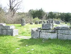 Im Bereich der Akropolis fanden bis heute keine richtigen Ausgrabungen statt. Bei früheren Untersuchungen sollen Fundamente mehrerer Gebäude und eine Zisterne gefunden worden sein.[50]