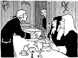 In Janoschs Parodie merkt sich die Bauersfrau die häufigsten Sätze des Doktors, womit ihr Mann und sie immer reicher und beliebter werden.[5]
