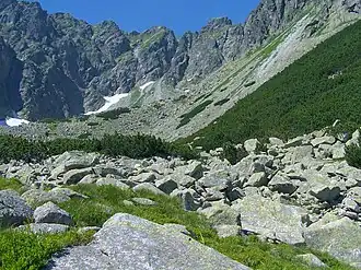 ▬ Oberhalb des Tals verläuft auf dem Südkamm der Świnica der Höhenweg Orla Perć, den man vom Tal aus über den Gebirgspass Krzyżne erreichen kann.