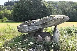 Der einfache Dolmen (französisch Dolmen simple) liegt auf einer Wiese. Dolmen ist in Frankreich der Oberbegriff für Megalithanlagen aller Art (siehe: Französische Nomenklatur).