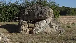 Der narbige Dolmen aus Puddingstein besitzt einen etwa 3,0 × 2,0 m großen ovalen Deckstein, der auf drei Tragsteinen liegt, einen weiteren Seitenstein besitzt und nach Süden offen ist, wo möglicherweise Steine fehlen. Der Zugang fehlt und lag wahrscheinlich im Osten.