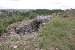 Der etwa einen Meter breite, noch weitgehend von seinem Hügel stabilisierte, restaurierte Dolmen ist auf einer Länge von etwa 4,6 m erhalten. Er besteht aus vier Tragsteinen, dem Endstein und drei am hinteren Ende aufliegenden Decksteinen, von denen der hinterste zerbrochen ist. Ein vierter Stein, der die Maße eines Decksteins hat, liegt hinter der Megalithanlage auf dem Hügel. Der ungedeckte Teil ist etwa 3,1 m lang und wurde mit Beton und Trockenmauerwerk gefasst.