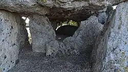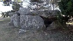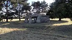 - ↑ Der Dolmen angevin, ist eine Allée couverte vom Typ Loire, mit (eingezogenem) Trilithenportal als Zugang
