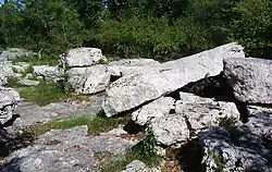 Etwa 200 m südlich und tiefer gelegen, liegt der Kalksteinbruch, aus dem die Platten stammen, die für den Bau der Dolmen verwendet wurden. Die Oberfläche ist in natürlich entstandene regelmäßige Rechtecke unterteilt.