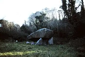 Es gab Restaurierungen an der Rückseite der Megalithanlage, deren Steine aus Granit sind. Der vorne in eine Höhe von 3,5 m aufragende Deckstein ist etwa 4,4 m lang und breit und hat ein Gewicht von etwa 45 Tonnen und in der Dicke des Decksteins die typische, verjüngende Form irischer Portal Tombs. Das gibt dem Dolmen das Aussehen eines auffliegenden Vogels. Er hat auf der Oberseite des Endsteins zwei tiefe Rinnen mit Kanälen, die zu den Seiten führen. Dies ist eine Form, die auf irischen Denkmälern mehrfach festgestellt wurde.