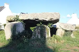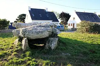 In der Nähe liegen die Dolmen Mané Rhun (ruiniert), Moulin des Oies und Kerlutu.[1]