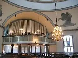 Außerdem steht in der Kirche die größte Kirchenorgel Finnlands. Das Instrument wurde 1938 erbaut und hat 88 Register (6.666 Pfeifen ) auf fünf Manualwerken und Pedal . Eine Besonderheit ist das Fernwerk, ein kleines Orgelwerk, welches hinter dem Altargemälde untergebracht ist.[ 1]