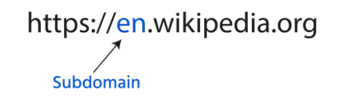 Topologisch unterhalb, und damit links von der Root-Domain aufgeführt, folgt der Name einer Top-Level-Domain (TLD). Unterhalb bzw. im Namen links von der Top-Level-Domain folgen die Namen der Second-Level-Domains gefolgt von Third-Level-Domains oder schlicht Subdomains.