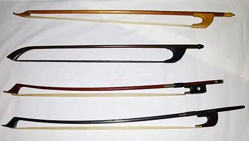 Geradezu anachronistisch muten die von den technischen Neuerungen des 18. und 19. Jahrhunderts unberührten Bögen an, mit denen Dragonetti zeitlebens musizierte. Die Herkunft vom archaischen Violone-Bogen ist an ihrer extrem konvexen Form leicht erkennbar, auch fehlt jede Vorrichtung, die es erlaubt, die Spannung des Bogenhaars zu regulieren. Offenbar wusste er die Spieleigenschaften solch alter Bögen zu seinem Vorteil zu nutzen, denn gerade seine Bogentechnik wurde nicht nur bewundert, sondern auch weithin imitiert. Der kurze, kräftige Bogen begünstigt vor allem die rasanten, rhythmisch kleinräumigen Staccato-Figurationen, die das auffälligste Merkmal des Dragonetti-Stils sind, weit ausschwingende Kantilenen bilden dagegen die Ausnahme. 1827 versuchte Rossini, am Pariser Conservatoire den durch Dragonetti popularisierten Bogentyp und die dazugehörige Spielweise einzuführen, konnte sich damit aber letztlich nicht durchsetzen, obwohl seine Anregungen durchaus wohlwollend aufgenommen wurden. Der Belgier François-Joseph Fétis und der französische Bassist Guillaume Gélinek verfassten Artikel für die Fachpresse, die die Vorzüge des „Dragonetti-Bogens“ herausstellten. Der in der Dresdner Hofkapelle als Violinist tätige Karol Lipiński ließ sich aus London einen solchen Bogen schicken, dessen Effekt er mit den Worten fuoco celeste[44] („himmlisches Feuer“) beschrieb. Sächsische Instrumentenbauer griffen die Konstruktionsweise auf und kombinierten sie mit den durch François Tourte eingeführten Neuerungen wie der konkaven Bogenstange und dem justierbaren Frosch. Dieser modernisierte Dragonetti-Bogen wurde später als „Dresdner Modell“ bekannt, heute nennt man ihn im Allgemeinen den „deutschen Bogen“.