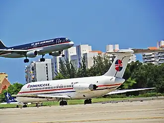 ![]() Eine ebenfalls in der Dominikanischen Republik auf eine andere Fluggesellschaft (PAWA Dominicana) zugelassene Douglas DC-9-32, ähnlich der Unfallmaschine | |
