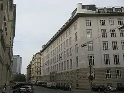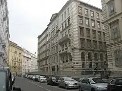 Der große Bau zwischen Biberstraße, Franz-Josefs-Kai und Dominikanerbastei wurde 1906–1907 von Friedrich Schön im späthistoristischen Stil erbaut und 1955 nach Kriegsschäden adaptiert. Er liegt an der Hauptadresse Franz-Josefs-Kai 7–9.