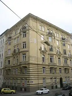 Das Wohnhaus wurde 1906 im secessionistischen Stil von Ely Wasserstrom erbaut. Das nur teilweise erhaltene Gebäude zeigt eine durch Erker und Balkone gegliederte Fassade mit Attikagiebel. Im Foyer ist secessionistischer Stuck zu sehen.