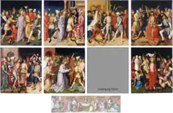 Der Hochaltar im Chor mit (heute verlorenen) geschnitzten Bildern von 1496 wurde 1500/1501 durch gemalten Flügel zu einem zweimal wandelbaren Altar erweitert. Hans Holbein d. Ä. und seine Werkstatt malten mehrere (erhaltene) Tafeln und eine Predella. Die Außenseite der Altarflügel von Holbein zeigte links in zwei Tafeln übereinander den Stammbaum Christi, rechts den Stammbaum der Dominikaner. Die Innenseiten trugen acht Szenen aus der Leidensgeschichte Christi und vier Szenen des Marienlebens, die Predella eine Darstellung des Abendmahls sowie links und rechts den Einzug Jesu in Jerusalem und die Fußwaschung des Petrus.