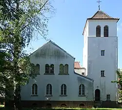 Verdeckt vom ehemaligen Schulzenhof und von der Straße nicht zu sehen liegt der Gebäudekomplex des Klosters. Er wird geprägt von einer Basilika mit daneben stehenden Campanile, in dem ein Geläut aus drei Bronzeglocken hängt, das von der Glockengießerei Gebhard stammt. Die ersten beiden wurden 1954, die dritte Glocke wurde 1958 gegossen.