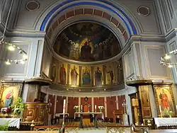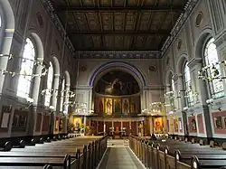 Das Altargemälde wurde von Leopold Kupelwieser, Professor an der Akademie der Schönen Künste in Wien, geschaffen. Es war ein Geschenk Kaiser Ferdinands I. von Österreich. 1864/1865 wurde die Apsis von Joseph Settegast aus Düsseldorf nach Hetschs Plänen ausgestaltet. Das Thema des Gemäldes ist die Dreifaltigkeit, die von dänischen und weiteren nordischen Heiligen flankiert wird. Der Kathedrale gehört eine umfangreiche Sammlung an Gemälden und Skulpturen. Einige sind in der Kirche zu sehen, viele weitere wurden auf andere katholische Kirchen im Land verteilt, unter anderem an das Kloster Aasebakken.
